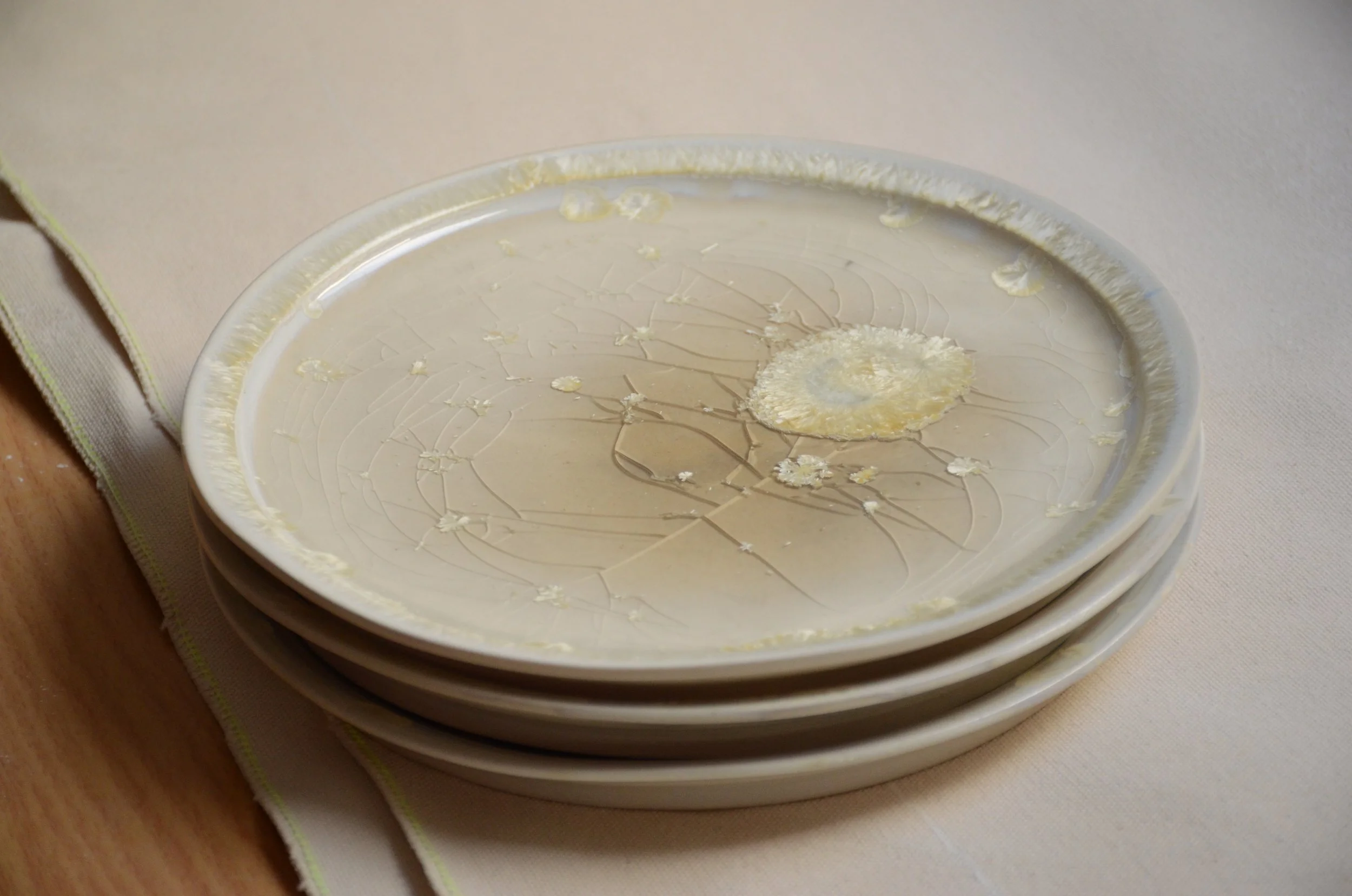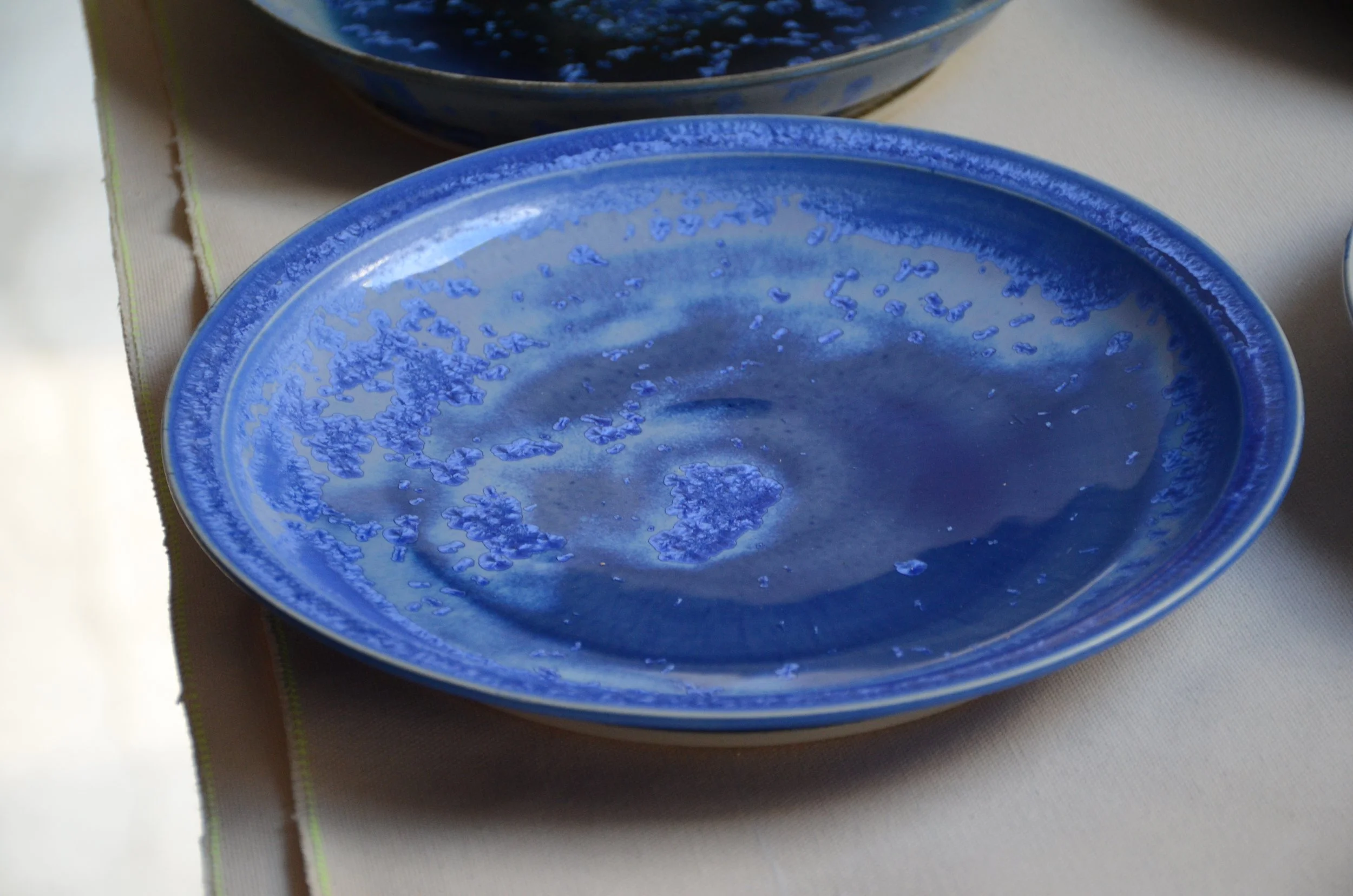 My work focuses on the captivating and unpredictable world of crystalline glazes. Each piece is a collaboration between chemistry, timing, and controlled temperature cycles, resulting in crystal formations that grow on the surface of the glaze during firing. I am drawn to this process because it combines precision with surprise—every firing reveals patterns and structures that cannot be fully predicted or repeated. Through form, glaze composition, and carefully guided kiln schedules, I aim to create pieces that highlight the organic beauty of crystal growth and the delicacy of their reflective surfaces. These works are an exploration of movement, depth, and the quiet complexity that emerges when materials are given space to transform.